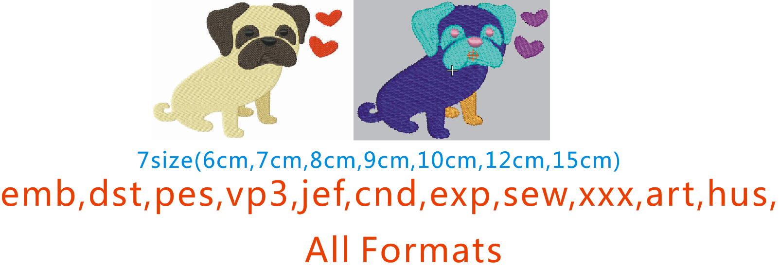 绣花机格式:DST,PES,JEF,CND,VP3,EXP,HUS,SEW,XXX,ART,等